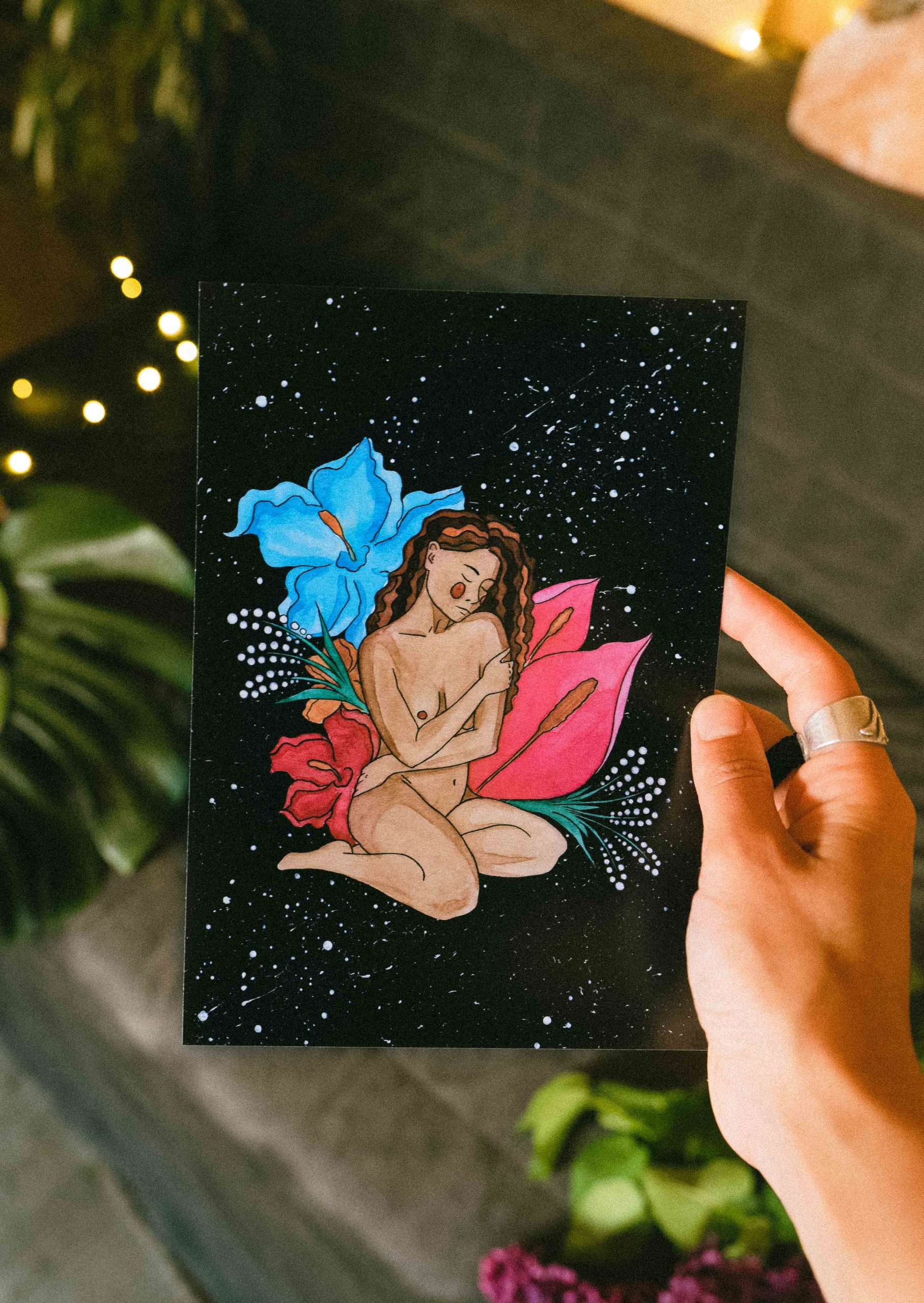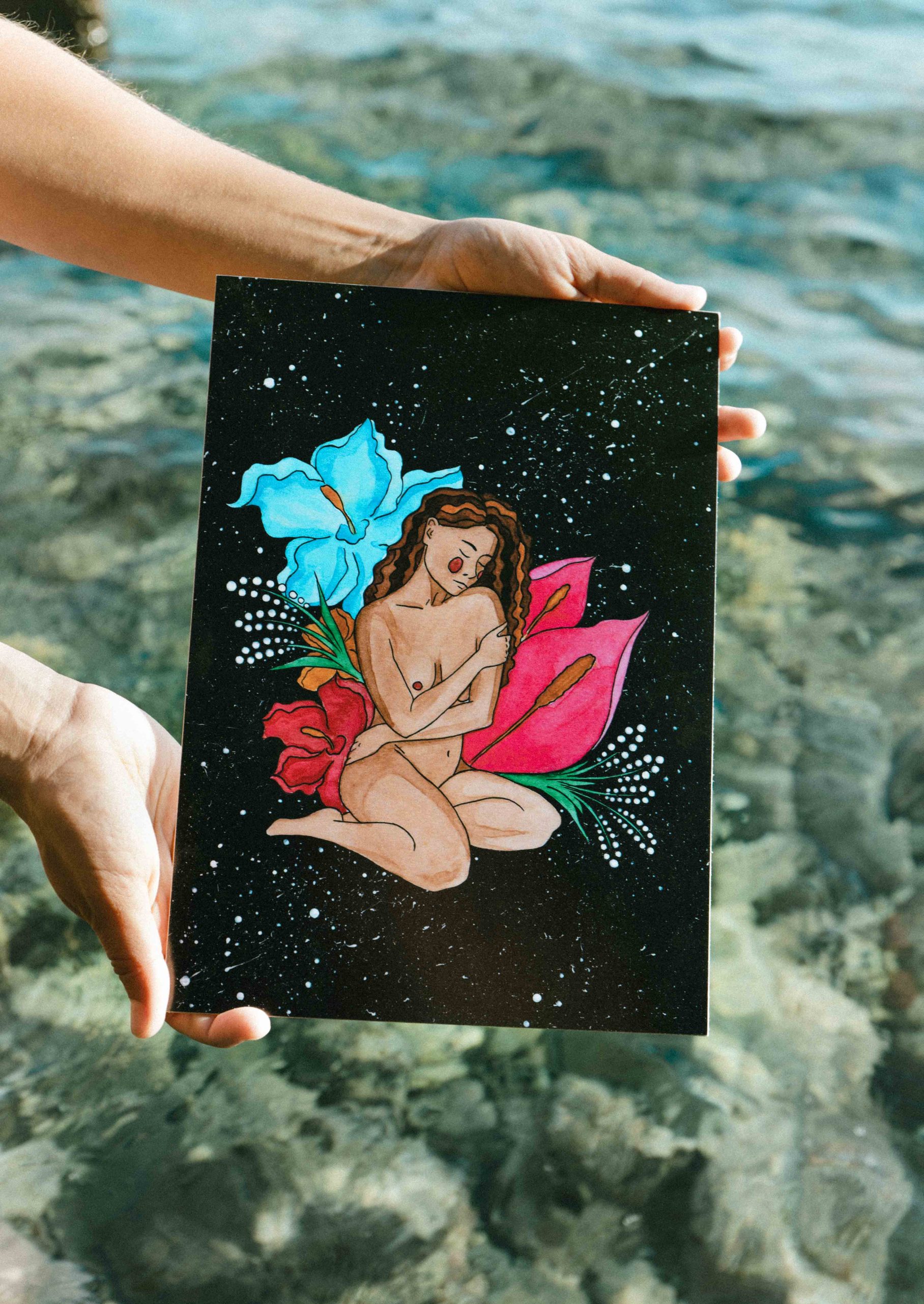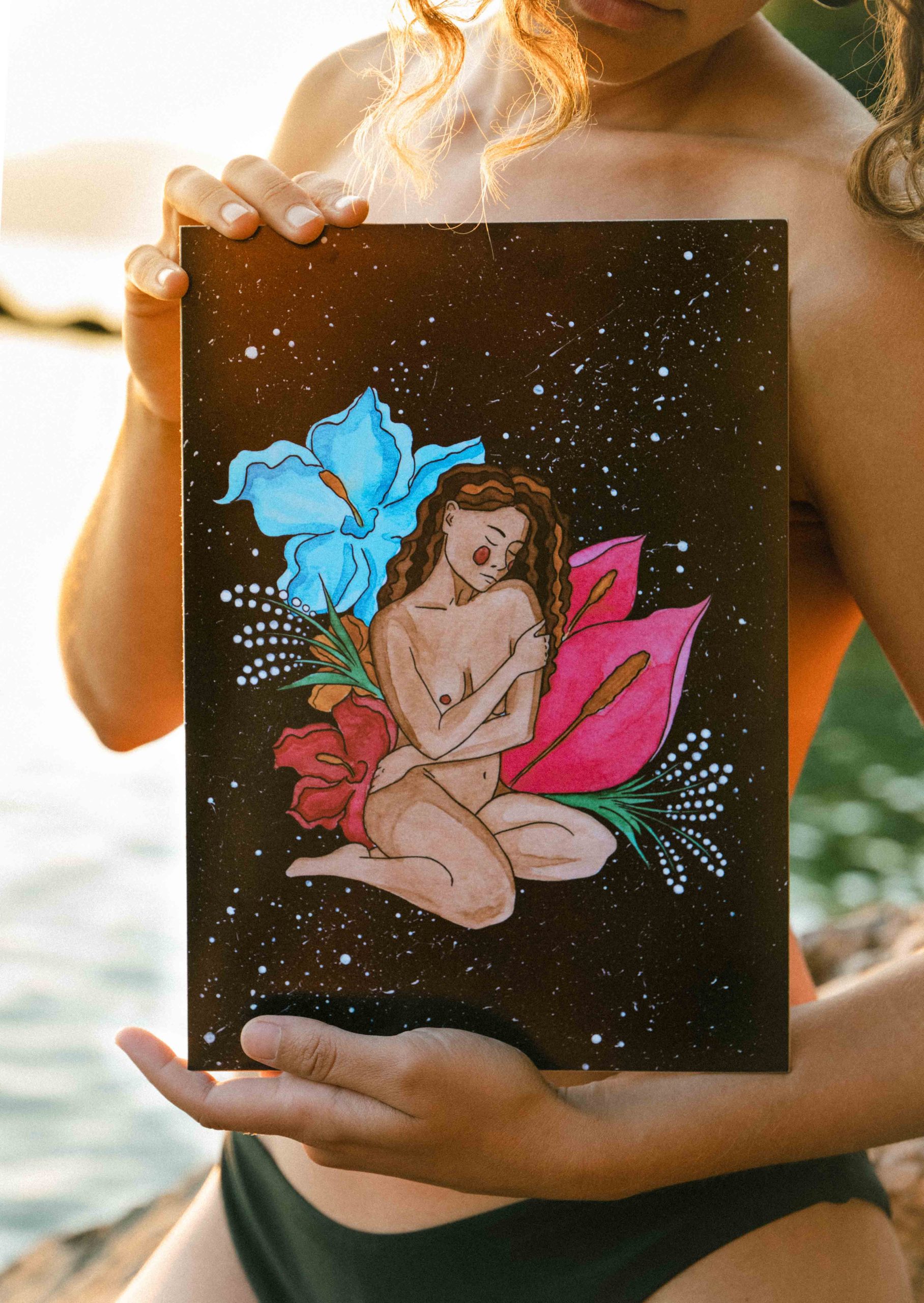 This art piece is a reminder to always give love to ourselves first. When we do that we have the capacity to care for those around us. Take care of yourself first, so you can shine your light and illuminate others.
